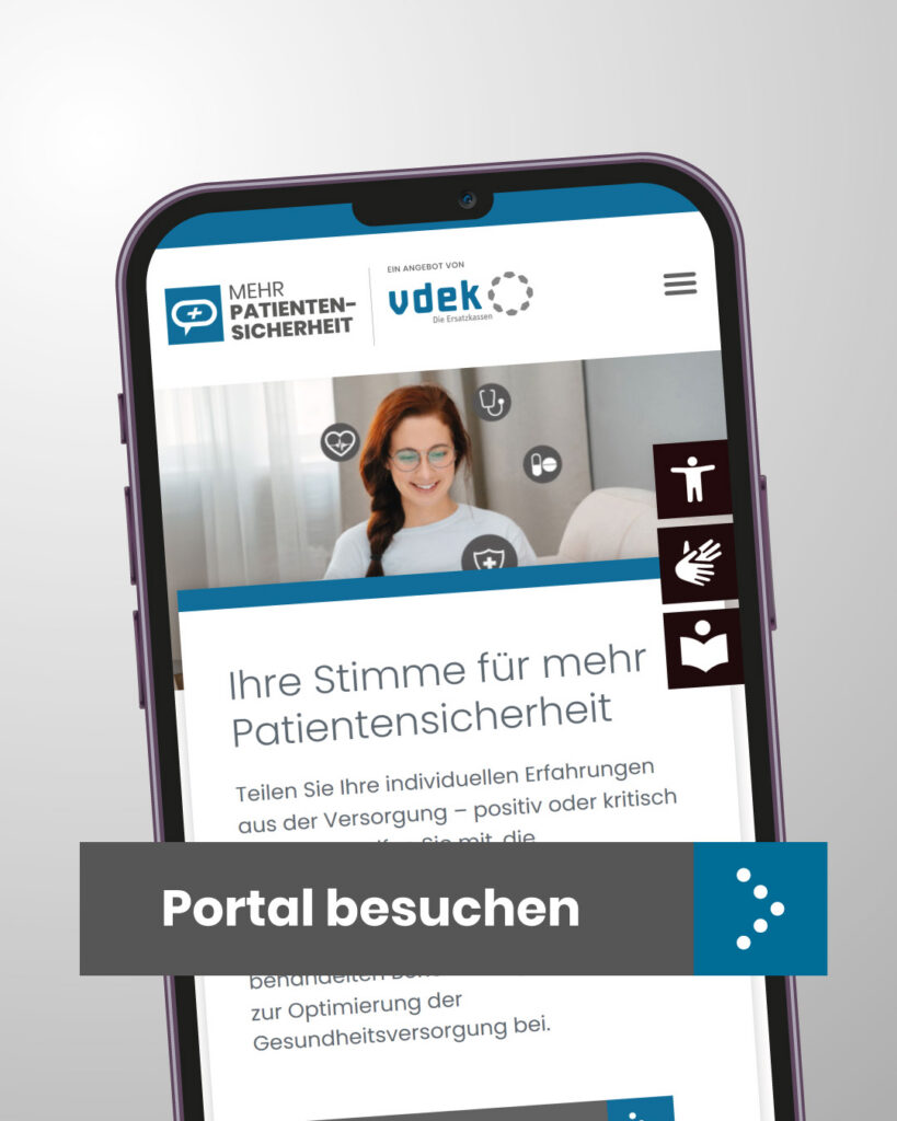 Alle positiven oder negativen Erfahrungen zählen! Jede Rückmeldung hilft, das Gesundheitssystem für alle sicherer zu machen. Besucht unser Portal und berichtet von euren Erlebnissen.