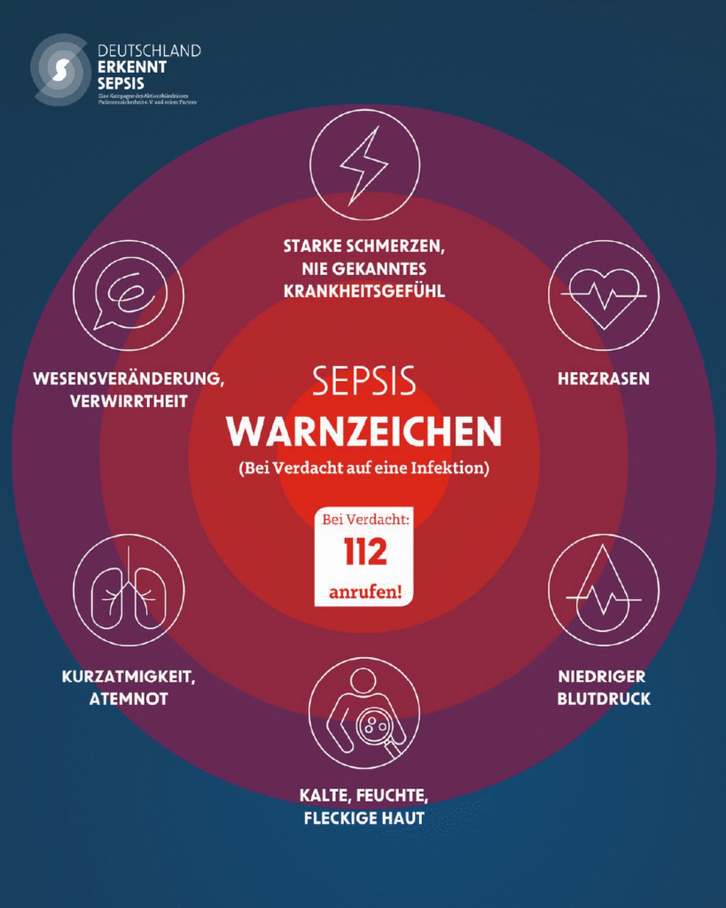 Diese Symptome können auch bei einer Sepsis auftreten – frag nach, ob eine Blutvergiftung ausgeschlossen wurde!